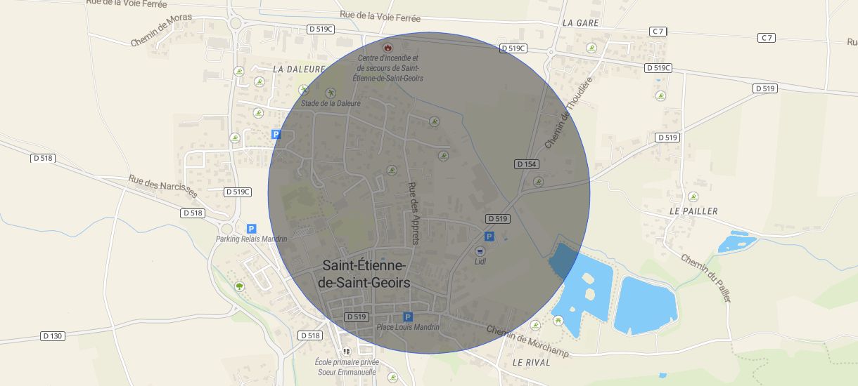 Appartement T3 (70 m² carrez) de plain-pied en rez-de-jardin, édifié en 2008, au centre du village de Saint-Etiennne-de-Saint-Geoirs, deux stationnements privés.